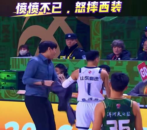 另一個被驅(qū)逐出場的是主教練邱彪。面對裁判的如此吹罰,山東隊主教練邱彪,也是十分生氣,于是就找裁判進行理論,在沒有得到一個合理解釋之后, 邱彪是越來越激動,直接脫掉了西裝,狠狠地砸在地上,還沖著裁判走去,嚇得125號裁判不斷后退,好在,2名山東隊球員及時拉住了邱彪,不然后果不堪設(shè)想,結(jié)果,大家也是看到了,邱彪被裁判直接驅(qū)逐出場……離開賽場的時候,邱彪依然是不斷咆哮,十分不滿!